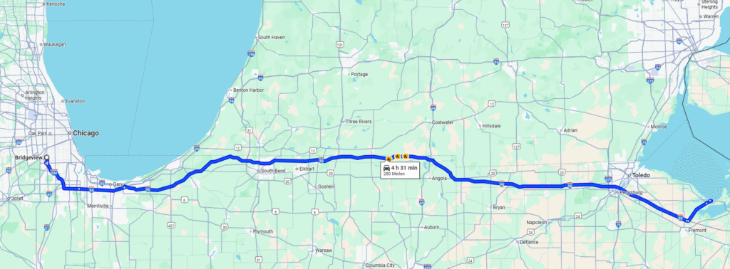 Ich machte halt In Port Clinton. Um meine Übernachtung und das Nachtessen zu finden ging ich voll „old school“ vor. In einer Raststätte schnappte ich mir von der Infotheke einen Prospekt und nur Minuten später hatte ich ein Hotel und ein Sushi Restaurant ausgesucht und gefunden. Kein Google – kein ChatGPT. 🙂