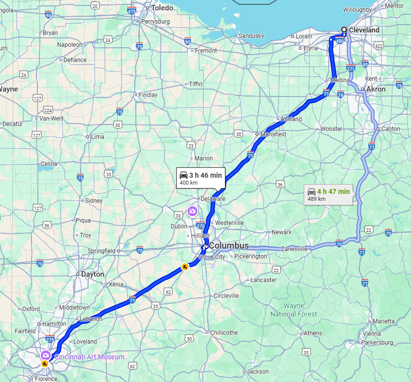 Während dem rund vierstündigen Transfer von Cleveland nach Cincinnati habe ich einen Stopp in Columbus – der Hauptstadt des Bundesstaats Ohio – eingelegt um das Capitol zu sehen. Dies hat sich zu einer Art Tradition entwickelt. Wenn immer möglich schaue ich mir das Capitol des Bundesstaats welchen ich besuche an. Meistens schön und prunkvoll und vielfach spannend, und für Jedermann frei zugänglich.