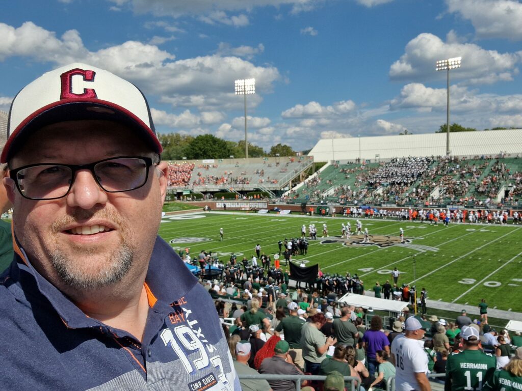 als krönenden Abschluss besuche ich noch ein American Football Spiel auf College Stufe. Ich treffe dort meinen Ex Chef-Chef-Chef und seinen Sohn, welcher seit mehreren Jahren in den USA lebt und dort auch schon einen Teil der Highschool absolviert hat. Zuerst in Florida und nun in Ohio. Und dies mit dem grossen Traum, es einmal als Profi in die NFL zu schaffen.